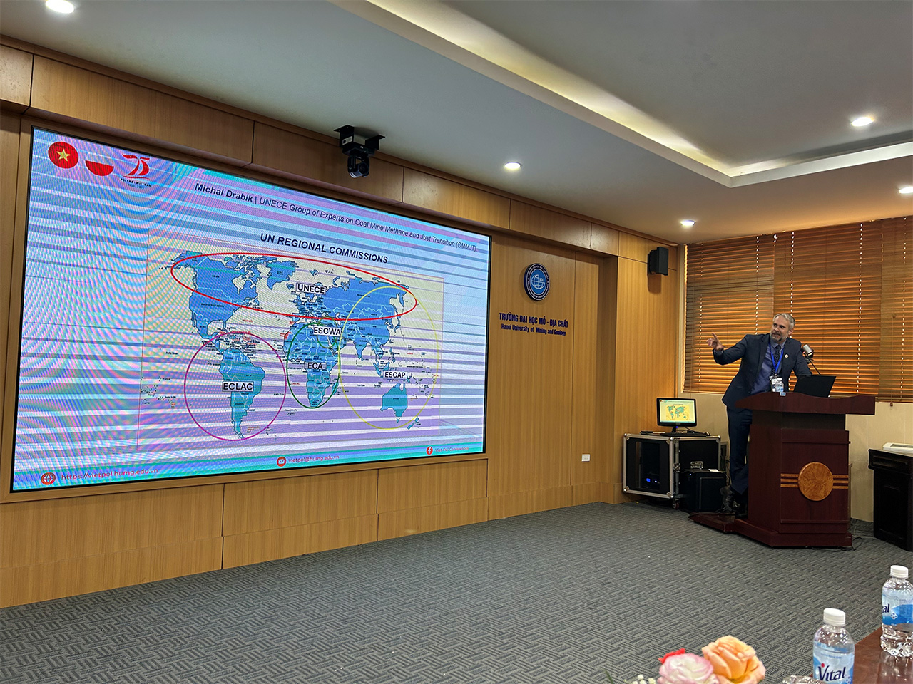 Szczególnym wydarzeniem była specjalna sesja techniczna UNECE – “Reducing Methane Emissions in the Mining Sector”, współorganizowana przez ICE-CMM Poland oraz AGH pod przewodnictwem prof. Marka Borowskiego. W sesji wzięli udział przedstawiciele instytucji naukowych i przemysłowych z Polski i Wietnamu, prezentując aktualne osiągnięcia i projekty dotyczące redukcji emisji metanu z kopalń węgla